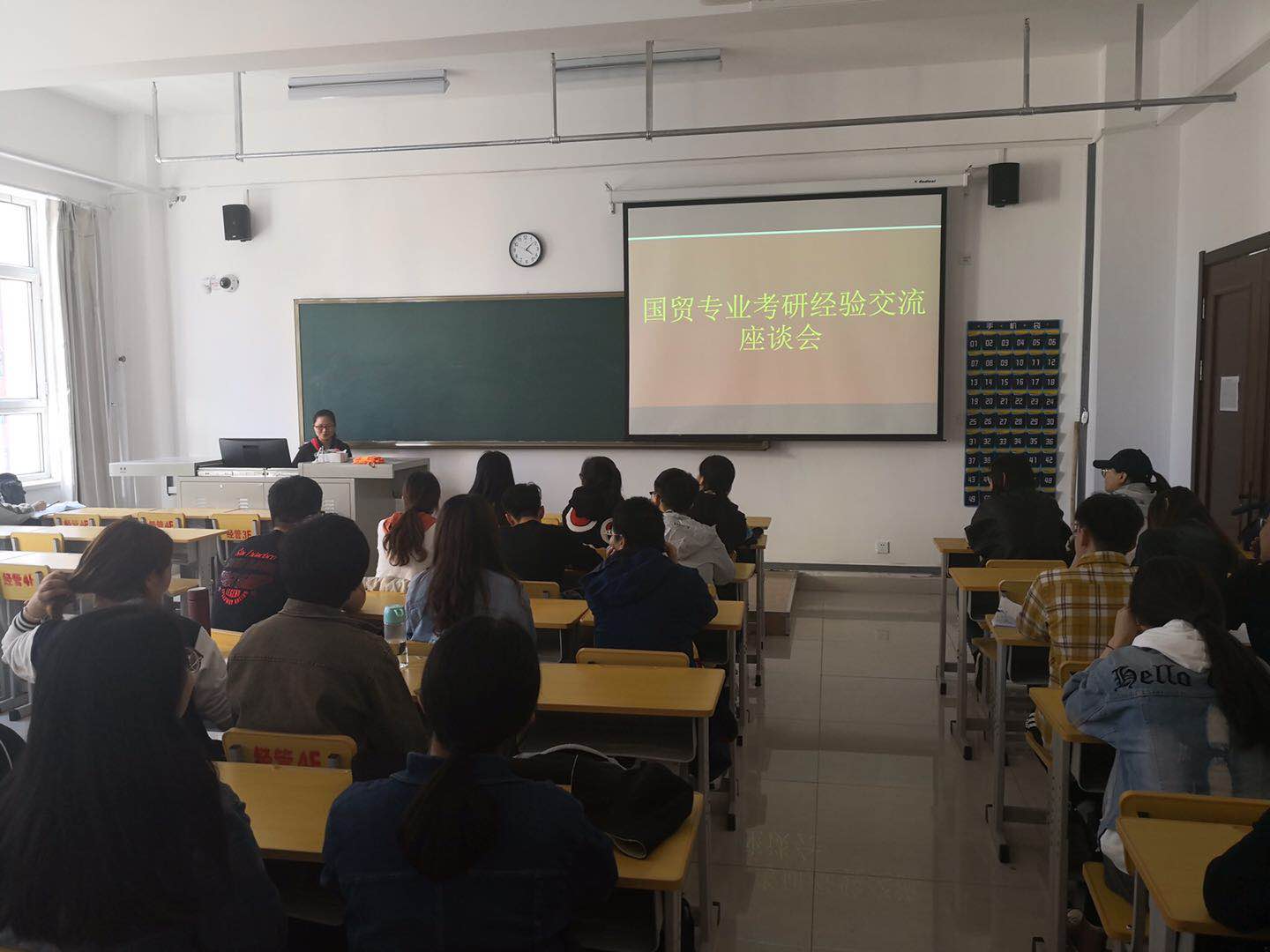 为提学生的考研积极性和考研的能力,根据学院同学的考研意向,AWC万象城娱乐于4月28日在崇文楼A411组织考研经验分享座谈会。本次考研座谈会由国贸系主任丰华和王淑华老师主持,2016级国贸班班长郭睿组织,邀请今年考入海南师范大学的2015级国际经济与贸易班班长徐琬儿同学为大家进行经验分享和交流互动。