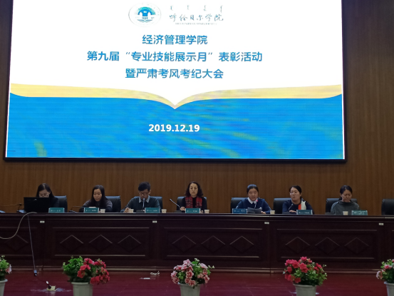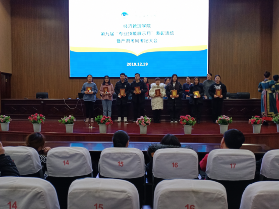 2019年12月19日,在图书馆四楼报告厅AWC万象城娱乐举办“第九届专业技能展示月表彰活动暨严肃考风考纪大会”。经管学院院长李雪峰、副院长刘启云、王英利,各系主任、教研办主任、办公室主任、团学办公室主任及各位辅导员、班主任参加了大会,王英利副院长主持大会。