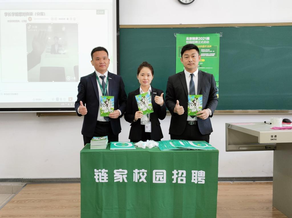 讲座伊始,湛经理通过短片的形式向大家展示了链家公司的日常工作内容,并用幽默诙谐的话语提出了当今形势下毕业生就业难的现状,使同学们对就业形势的严峻性有了更加清晰的了解。紧接着,从公司发展背景,行业能力、薪水报酬等角度全面介绍了公司现状。并为同学们讲解了日常工作中企业对于绩效的严格要求,希望同学们在工作中能够改进工作绩效,提高职业能力。最后,耐心细致地为同学们答疑解惑,使同学们对企业招聘有了更深层次的认识。本次宣讲会取得圆满成功。