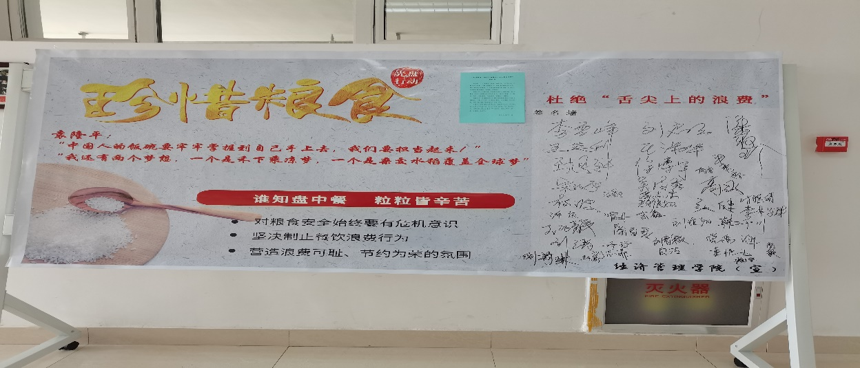 最后,各位老师同学们纷纷在“爱惜粮食,倡导光盘行动,禁止餐饮浪费”展板上签名。
