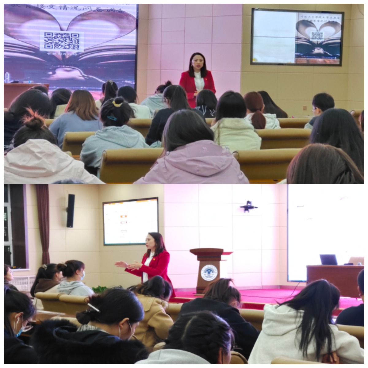祝琳琳老师以爱斯基摩人捕猎北极熊的故事为切入点展开话题进行讨论。她讲到:廉洁是素质的基准线,大学生应增强清正廉洁意识,针对自身专业寻找到廉洁风险点,要筑牢拒腐防变的思想道德防线。在校园树立起良好的廉洁意识,为大学生踏入社会建设一个良好的开端。祝老师谈到:同学们都树立应该廉洁清正、克己奉公之美德,以此来系好人生的第一粒纽扣。同学们听的都十分认真并且纷纷表示赞同。