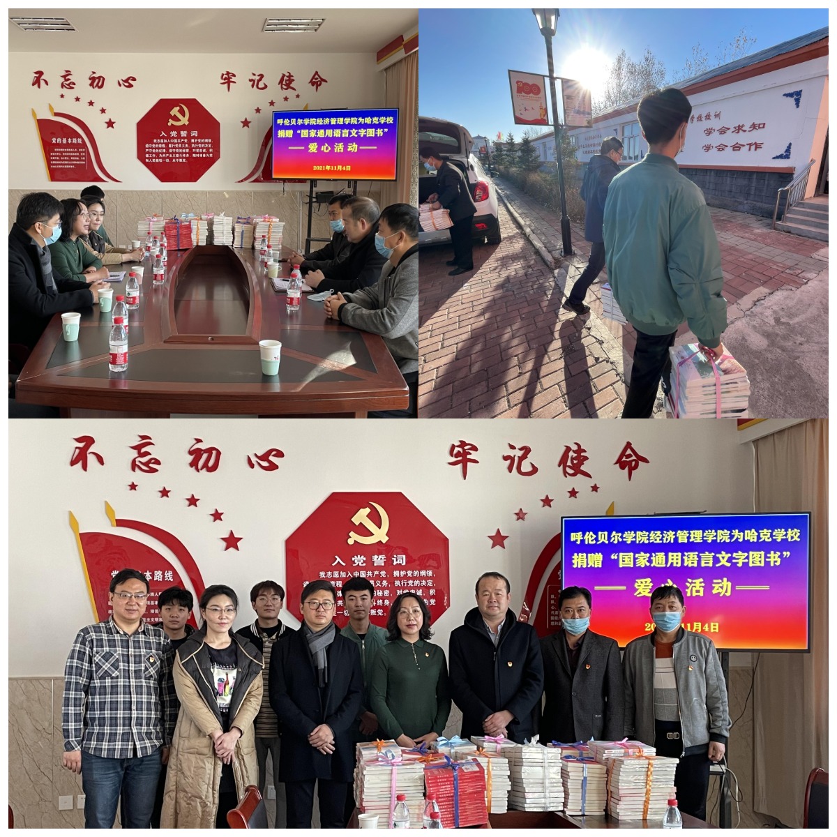 为提升教育水平,积极推广国家通用语言文字。在腾讯公益的大力支持下,11月4日下午,AWC万象城娱乐副书记李静、副院长王英利等师生一行到哈克学校,向哈克学校图书馆捐赠价值7000元图书242册,哈克学校党委书记等领导参加了捐赠仪式。