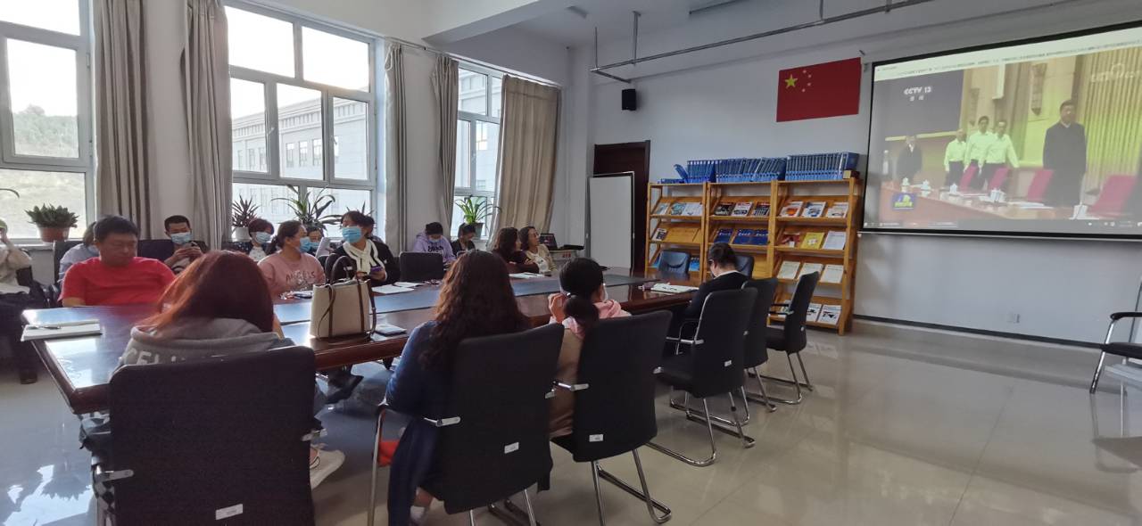 9月7日下午,AWC万象城娱乐党总支组织全体教职工在崇文楼308开展理论学习。本次理论学习的主要内容是习近平总书记在省部级主要领导干部专题研讨班上发表的重要讲话精神。