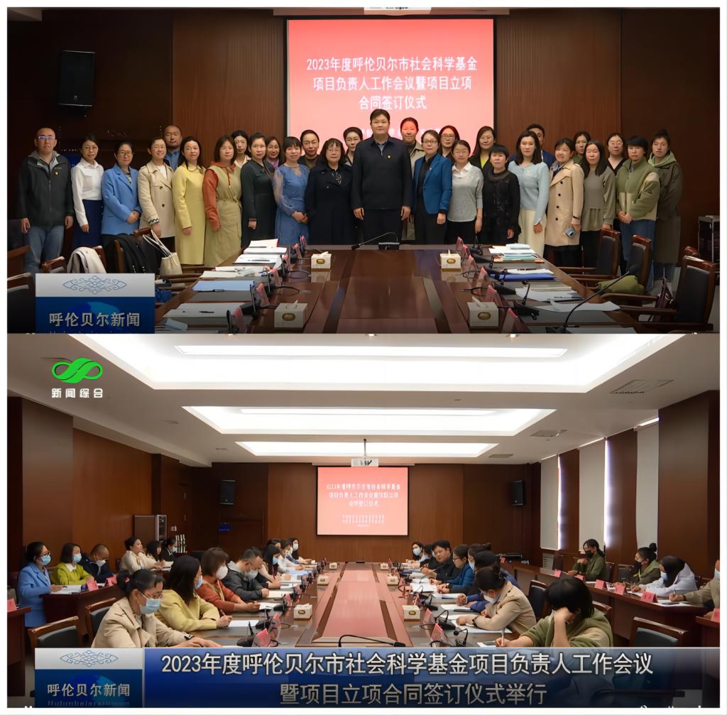 2023年5月16日上午10:00,2023年度呼伦贝尔市社会科学基金项目负责人工作会议暨项目立项合同签订仪式在呼伦贝尔市党政办公楼(中江写字楼)552会议室顺利举行,市委宣传部、市社科联及立项课题负责人参加会议。