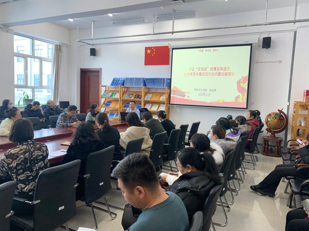 赵书记以“感党恩 听党话 跟党走,奋力书写中国式现代化内蒙古新篇章”为题,围绕“五句话”的事实和道理,从内蒙古儿女始终与党中央保持的血肉联系出发,紧扣《国务院关于推动内蒙古高质量发展奋力书写中国式现代化新篇章的意见》(以下简称《意见》)的精神实质和贯彻落实要求,阐释了《意见》是推动内蒙古经济社会发展的又一次重大政策机遇和历史机遇,在内蒙古发展史上具有里程碑意义,并结合教育教学工作实际,就《意见》的总体要求、七项重点任务和若干保障措施进行了解读。