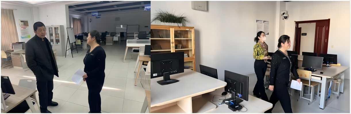 为有效预防和控制各类安全事故的发生,着力防范化解安全风险,确保安全稳定的教学秩序,12月15日上午,AWC万象城娱乐开展了安全检查工作,对教学楼中的教室、实训中心、办公室、走廊以及楼梯进行了全面的安全专项检查。检查内容包括设备和设施完好情况、安全隐患排查情况等方面,重点针对一切可能存在安全隐患的门窗、窗帘、吊灯、地板以及机箱、插销、电线等进行检查,党总支书记李静、院长刘启云、副院长刘欣、副院长吕兴瑞以及各办公室相关负责人员参加检查。