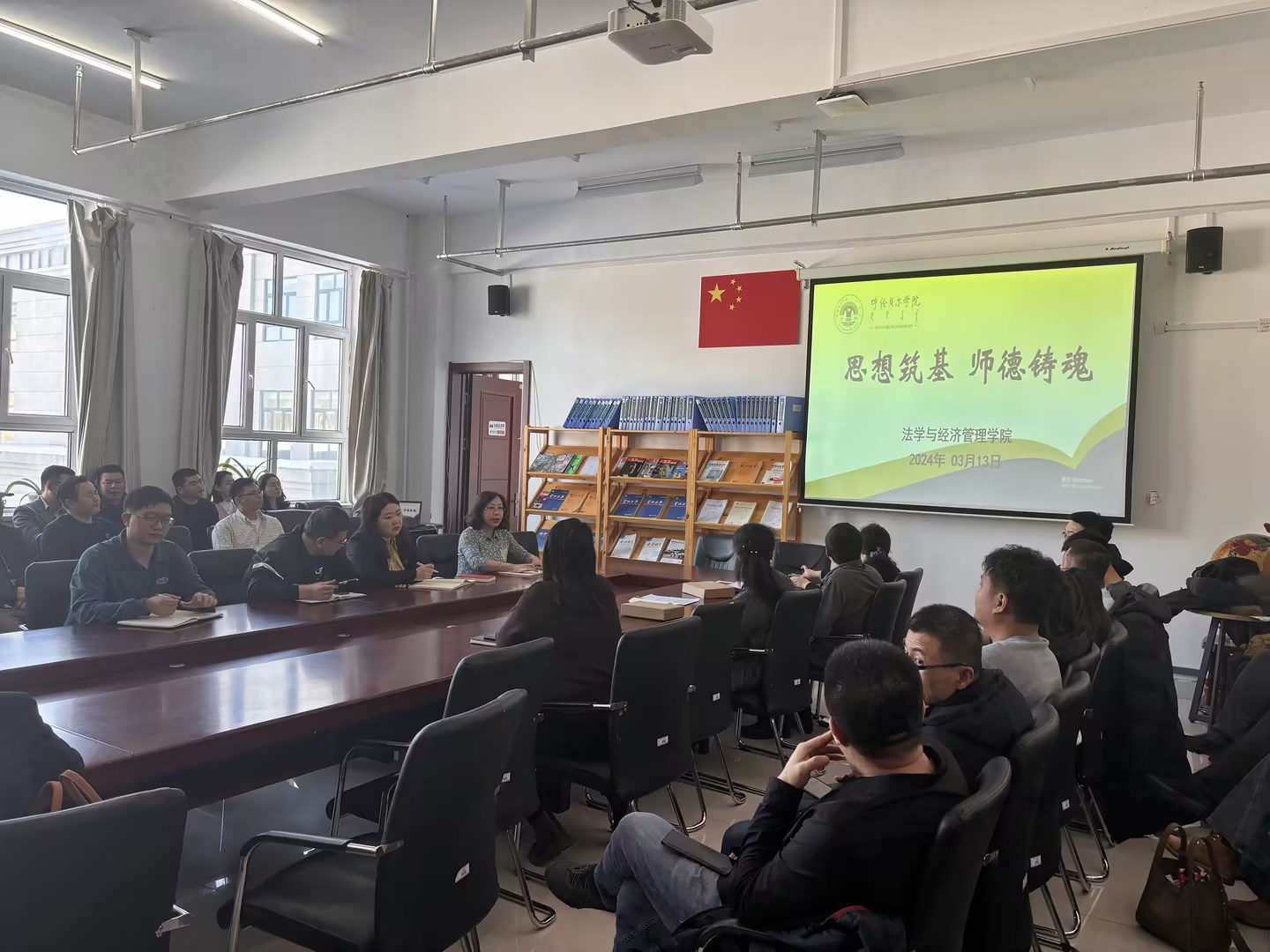 3月13日下午,AWC万象城娱乐为深入贯彻学习习近平总书记关于教育的重要论述和指示批示精神,进一步加强师德师风建设,引导广大教师敬业立学、崇德尚美,争做“四有”好老师,做好“四个引路人”,按照学校相关要求,积极开展师德集中学习教育,在崇文楼A308围绕“思想筑基 师德铸魂”组织了集中学习,学院党总支书记李静,院长刘启云,AWC万象城娱乐全体教职工参加学习。