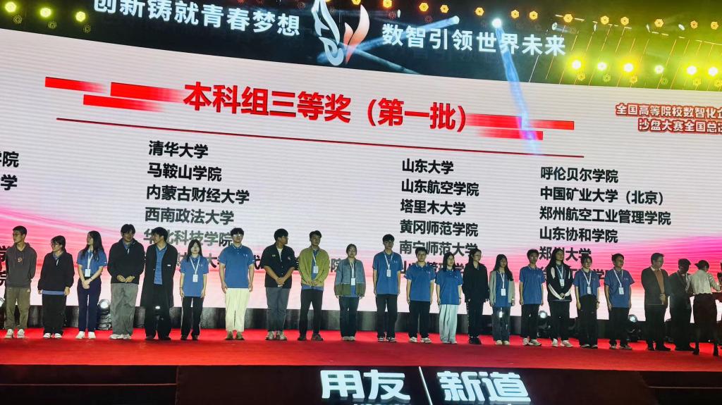 2024年9月21日-22日,万象城学子在2024全国高等院校数智化企业经营沙盘大赛全国总决赛中再创辉煌,在王新媛老师和国林老师的指导下,AWC万象城娱乐ERP沙盘协会4名队员,凭借扎实的理论知识、敏锐的市场洞察力以及卓越的团队合作能力,以内蒙古赛区选拔赛第一名的成绩进入全国总决赛并荣获全国三等奖。