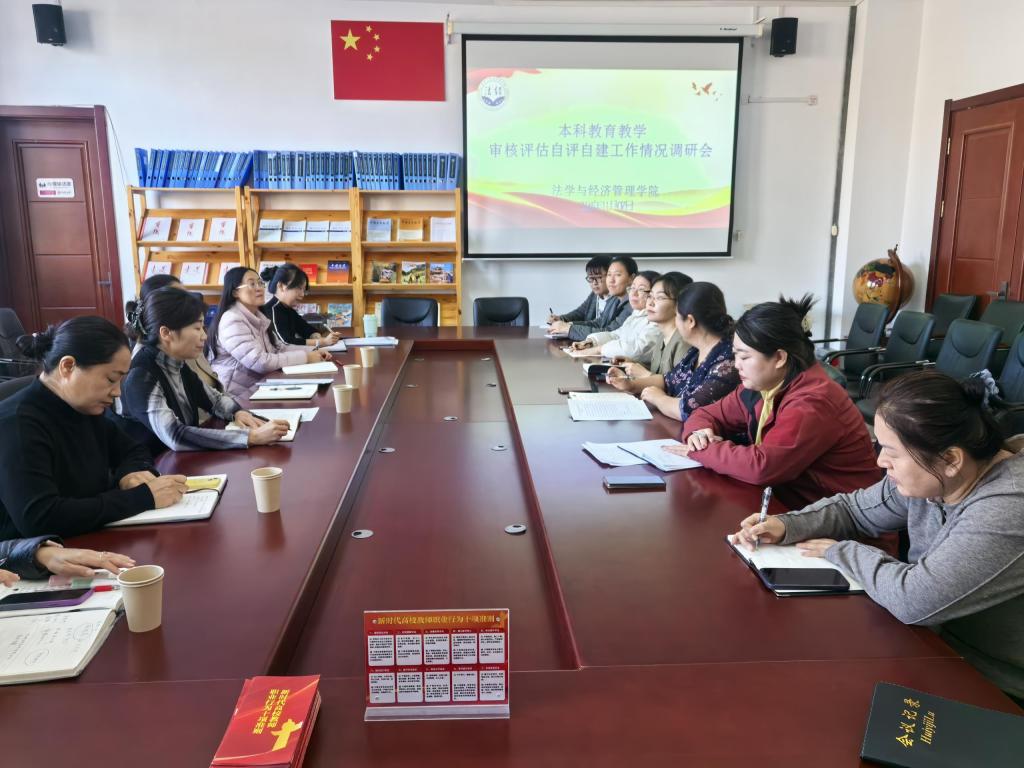 为督促推进学院本科教育教学审核评估工作的顺利推进,进一步推动迎评各项工作落细落实,11月7日下午,学校教务处处长张桂芝,审核评估专班娜布其等教师一行到AWC万象城娱乐调研指导本科教育教学审核评估工作,在崇文楼A308召开专项会议,法经学院班子成员、各环节干部、系主任及评估工作组成员参加会议。