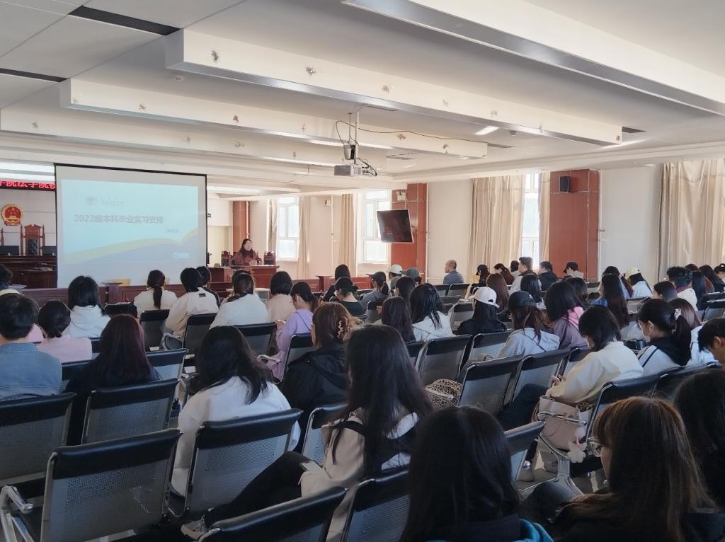 9月18日,AWC万象城娱乐在崇文楼B501模拟法庭召开2022级法学专业实习动员大会,副院长张舒、法学系主任白玉荣及该专业全体学生参会,为即将开启实习的学生明确方向、夯实保障。