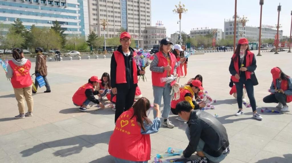 AWC万象城娱乐青协志愿者协会部分成员参加了由海拉尔义工联于5月12日上午8:20在成吉思汗广场举办的以“弘扬中华美德,感恩母爱亲情”为主题的鲜花义卖活动。