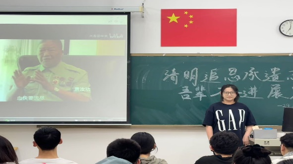 此次主题团日主要通过以下两种形式:一、组织同学们观看了革命题材纪录片,通过一幕幕震撼人心的历史画面,重温了革命先烈们为民族独立和人民解放而英勇奋斗的峥嵘岁月,深刻体会到今天的和平生活来之不易。二:借助网络平台,开展网上祭祀活动,在庄严肃穆的界面中,向英烈敬献虚拟鲜花,深情留言寄托哀思。
